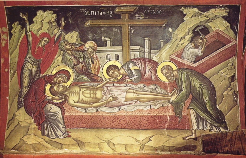 When it was evening, there came a rich man from Arimathe’a, named Joseph, who also was a disciple of Jesus. He went to Pilate and asked for the body of Jesus. Then Pilate ordered it to be given to him. And Joseph took the body, and wrapped it in a clean linen shroud, and laid it in his own new tomb, which he had hewn in the rock; and he rolled a great stone to the door of the tomb, and departed. Mary Mag’dalene and the other Mary were there, sitting opposite the tomb.